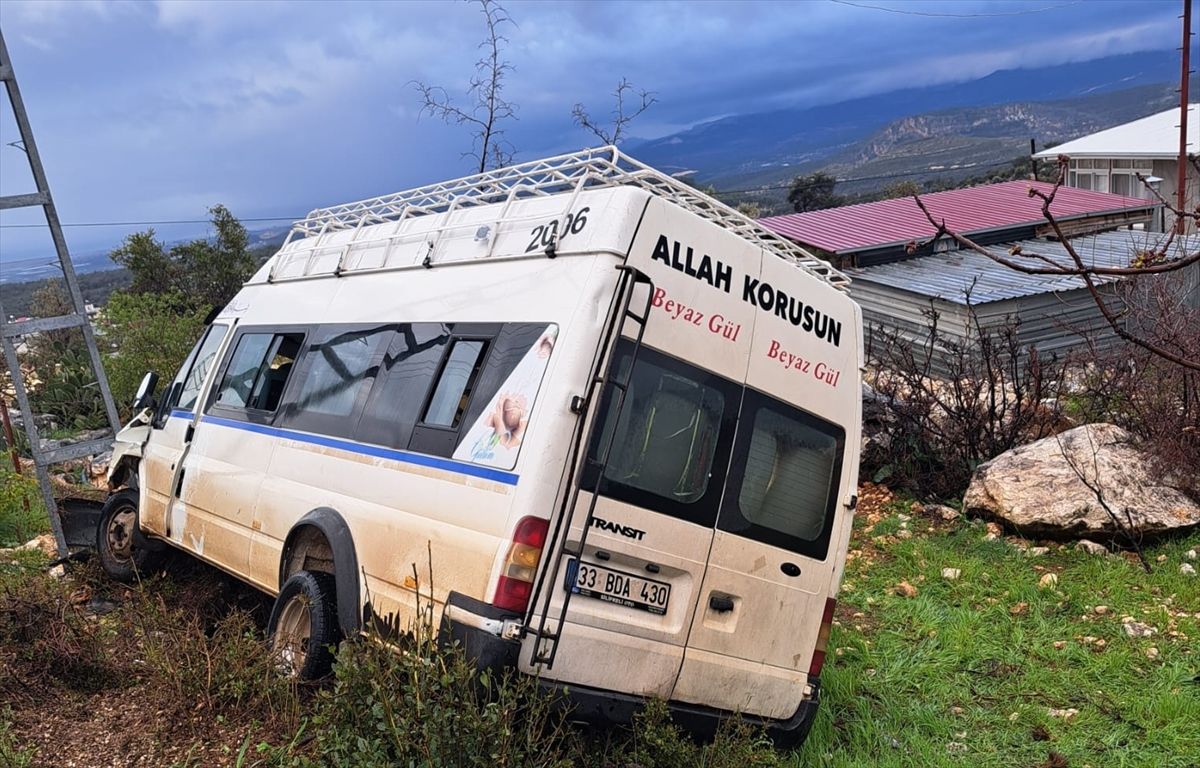 Mersin Silifke'de Minibüs Elektrik Direğine Çarptı: 4 İşçi Yaralandı