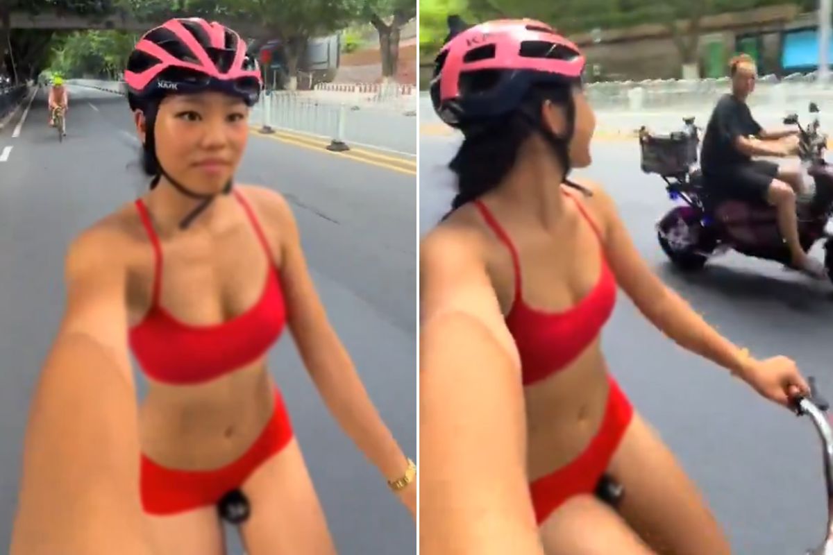 Çin'de Kırmızı Bikinili Bisikletli Sürücü Trafikte 5 Kazaya Neden Oldu, Yetkililer İnceleme Başlattı