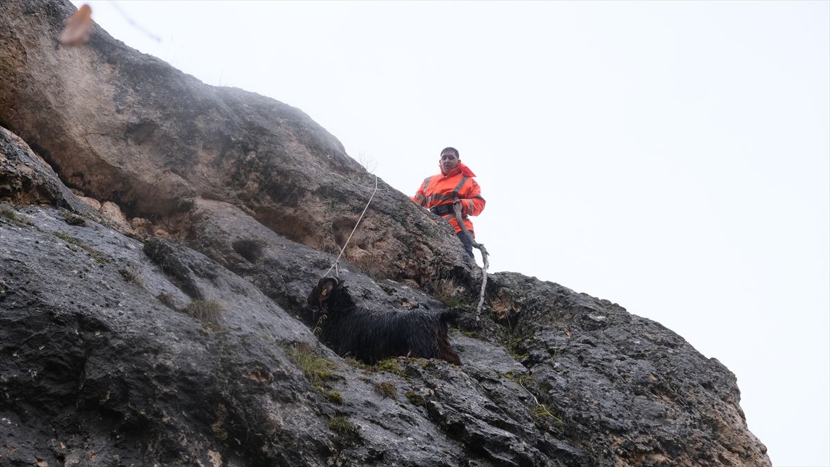 Sivas'ın Şarkışla ilçesinde kayalıklarda mahsur kalan anne keçi, itfaiye ekiplerinin başarılı müdahalesiyle kurtarıldı. Yavrusunun başından ayrılmayan keçi, iki gün sonra bulunduğu yerden çıkarıldı.