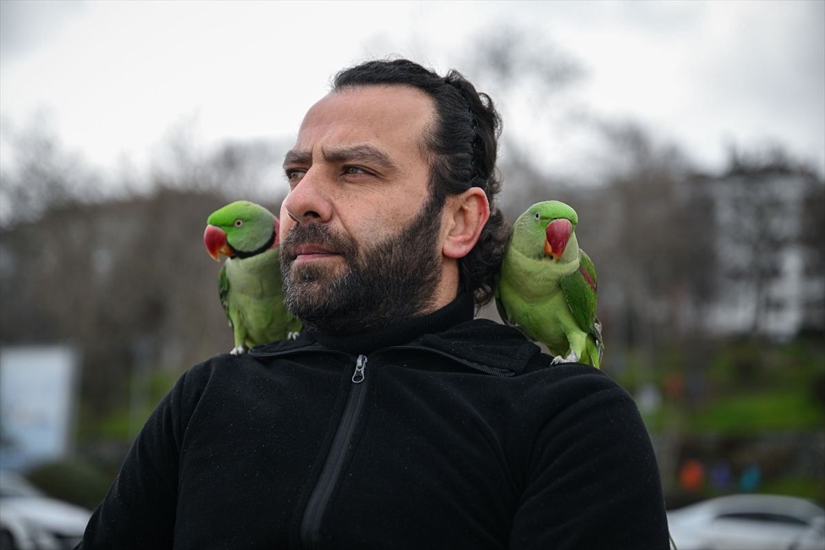 Avcılar’da yaşayan Muhammed İpekçi, yavruyken sahiplendiği iki İskender papağanıyla sosyal hayattan iş görüşmelerine kadar her anını paylaşıyor. İpekçi, papağanlarının sosyal aktivitelere katılması ve korunması için yoğun çaba sarf ediyor.