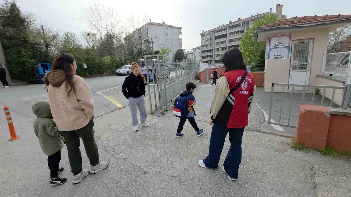 Edirne’de okul giriş çıkış saatlerinde polis sayısı artırılarak öğrenci güvenliği en üst seviyeye çıkarıldı. Yetkililer, denetimlerin kararlılıkla sürdürüleceğini açıkladı.
