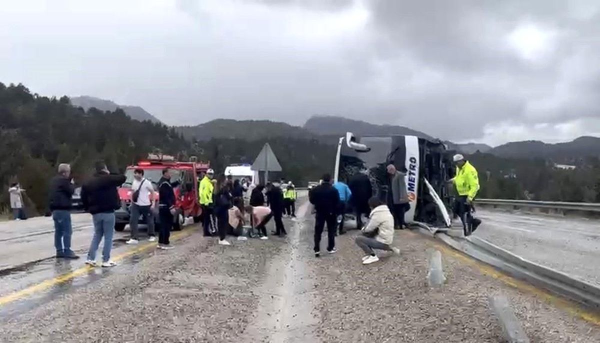Konya Seydişehir ilçesinde yağışlı havanın etkisiyle kontrolden çıkan Metro Turizm yolcu otobüsü devrildi, kazada çok sayıda yolcu yaralandı. Olay yerine sevk edilen sağlık ve güvenlik ekipleri yaralılara müdahale etti.
