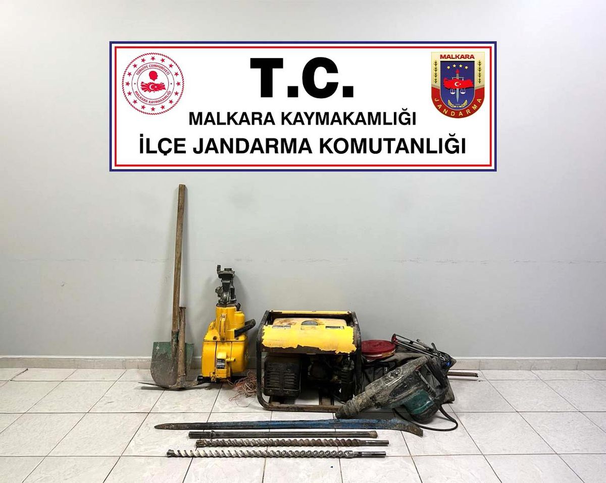 Tekirdağ'ın Malkara ilçesinde ormanlık alanda izinsiz kazı yapan üç kişi jandarma ekipleri tarafından suçüstü yakalandı. Olayla ilgili adli işlemler başlatıldı.