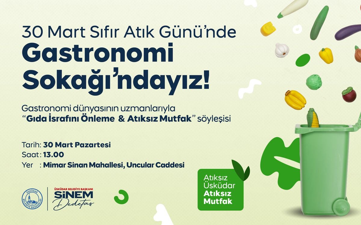 Üsküdar Belediyesi, 30 Mart Sıfır Atık Günü’nde gıda israfına dikkat çekmek amacıyla atıksız mutfak kültürünü yaygınlaştıracak kapsamlı bir etkinlik düzenliyor. Proje; farkındalık yürüyüşü, söyleşiler ve atölyelerle toplumda sürdürülebilir yaşam bilinci oluşturmayı hedefliyor.