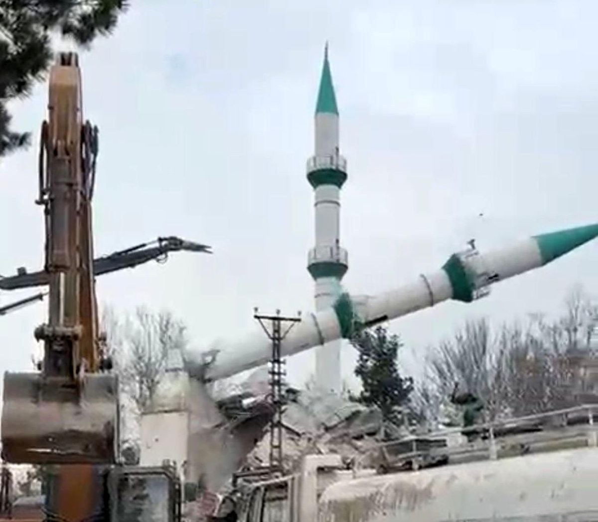 Malatya'da Deprem Hasarlı Sanayi Camii Kontrollü Şekilde Yıkıldı