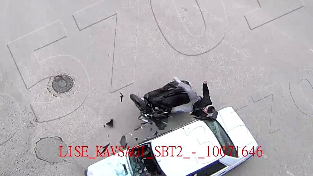 Amasya’da kavşakta motosikletle otomobilin çarpışması sonucu motosiklet sürücüsü yaralandı ve hastaneye kaldırıldı. Kask takmayan sürücünün kazayı hafif atlatması güvenlik kameralarına yansıdı.