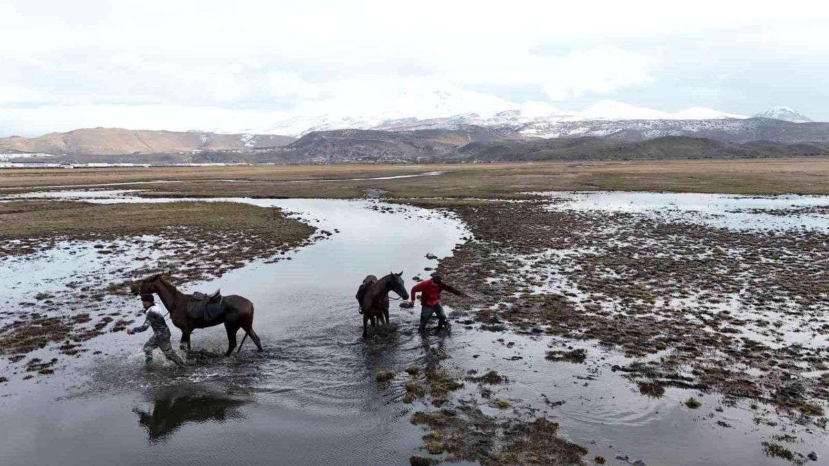Kayseri'de Atla Safari Macerası Suya Dönüştü: O Anlar Dronla Kaydedildi