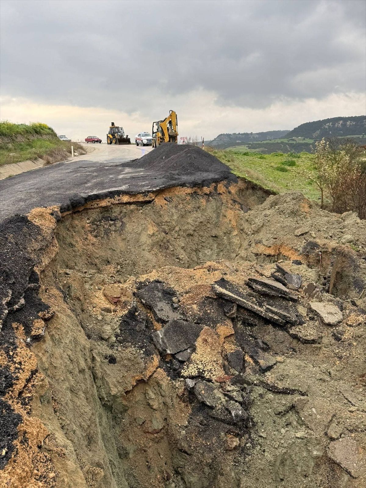 Manisa Selendi’de Yağış Sonrası Çöken Yol Trafiğe Kapatıldı, Onarım Çalışmaları Sürüyor