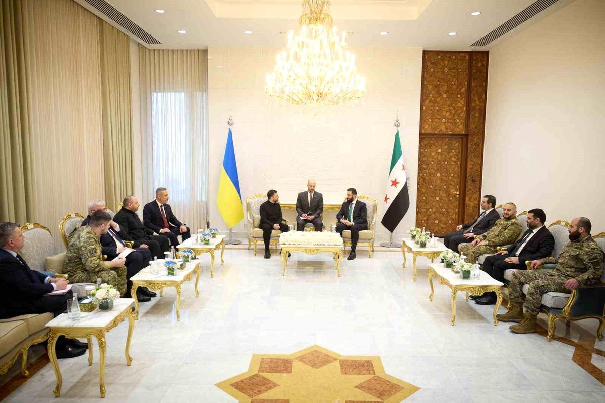 Dışişleri Bakanı Hakan Fidan'ın ev sahipliğinde Suriye'de düzenlenen üçlü görüşmede, Ukrayna Devlet Başkanı Vladimir Zelenskiy ve Suriye Devlet Başkanı Ahmed eş-Şara bir araya geldi. Üç ülke liderleri, bölgesel iş birliği ve diplomatik ilişkiler üzerine önemli görüşmeler gerçekleştirdi.