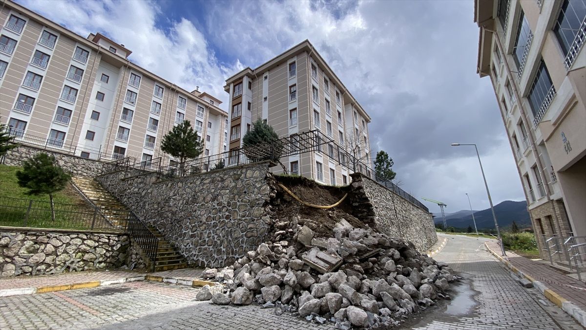 Balıkesir'in Sındırgı ilçesinde etkili olan sağanak yağış nedeniyle TOKİ konutlarının istinat duvarı çöktü. Olayda yaralanma yaşanmazken, belediye ekipleri taşların kaldırılması için çalışma başlattı.