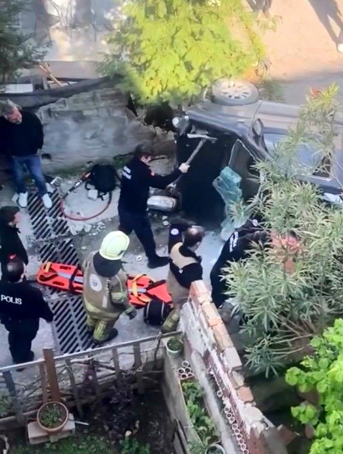 Bursa Yıldırım'da Kontrolden Çıkan Otomobil Merdivenlerden Yuvarlandı: 1 Yaralı