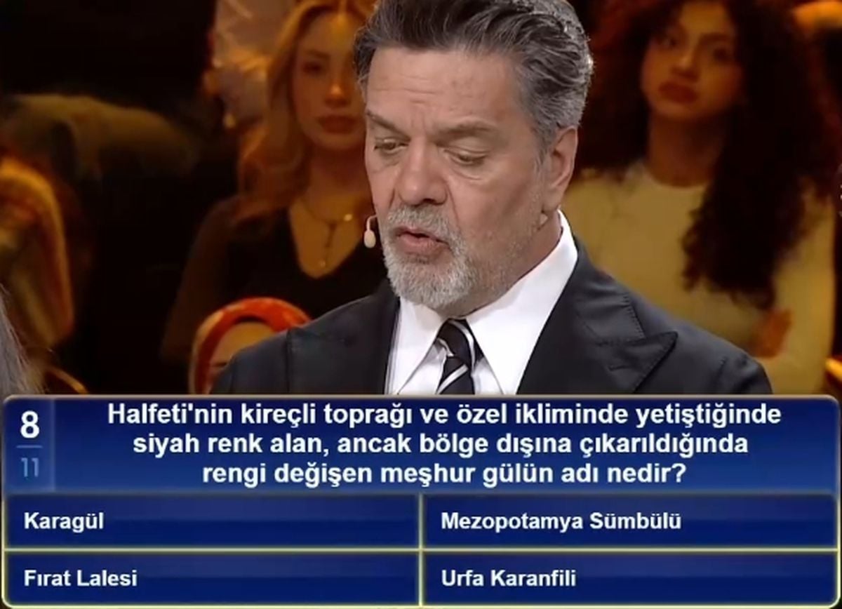 Beyazıt Öztürk’ün sunduğu Beyaz’la Joker programında Halfeti’nin kireçli toprağında siyah renk alan ve bölge dışına çıkarıldığında rengini değiştiren ünlü gülün adı soruldu. Program Kanal D’de yayınlanmaya devam ediyor.