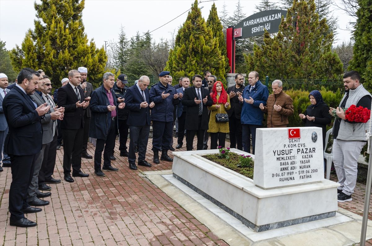 Ankara'nın Kahramankazan ilçesinde Ramazan Bayramı arifesinde şehitlik ve mezarlık ziyaretleri yoğun olarak gerçekleştirildi. Anma etkinliğinde protokol üyeleri, şehit yakınları ve gaziler bir araya gelerek dualar okudu.