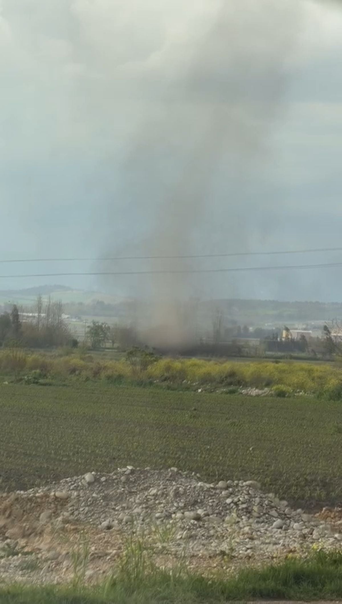 Osmaniye'nin Kadirli ilçesinde sağanak öncesi meydana gelen hortum, Adana karayolu Soysallı mevkiinde bir vatandaş tarafından görüntülendi. Hortumun boş arazide oluşması nedeniyle herhangi bir zarar yaşanmadı.