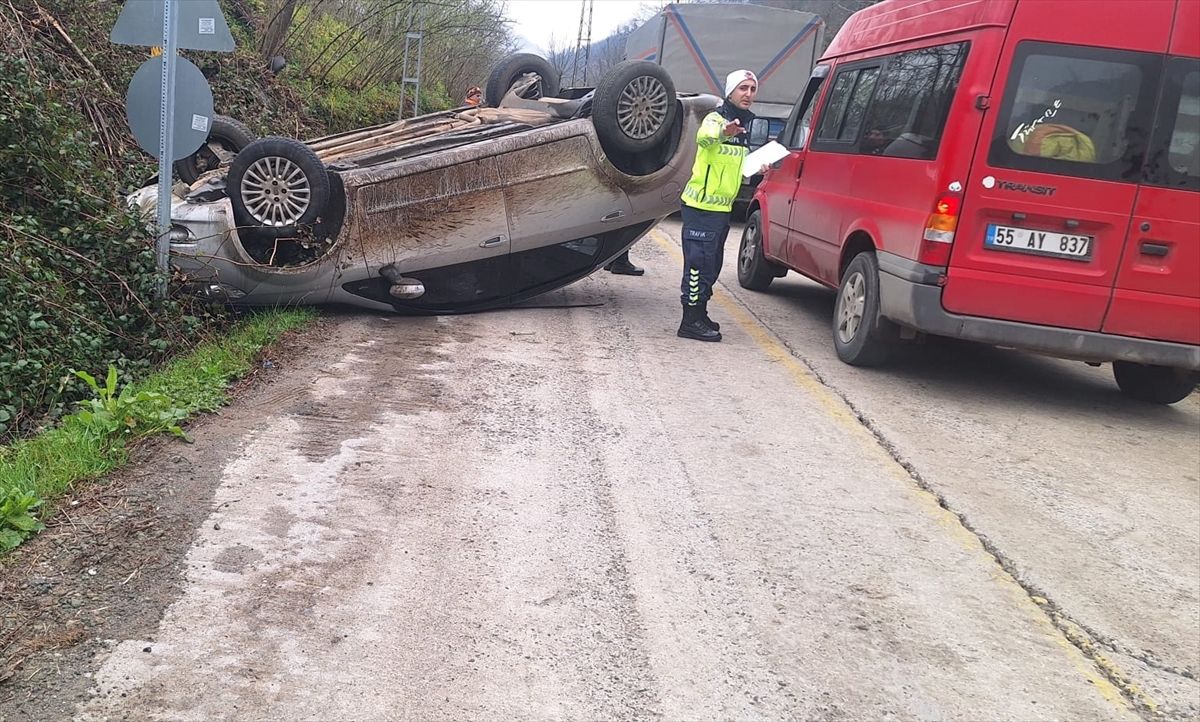 Salıpazarı'nda Otomobil Devrildi: 2 Kişi Yaralandı