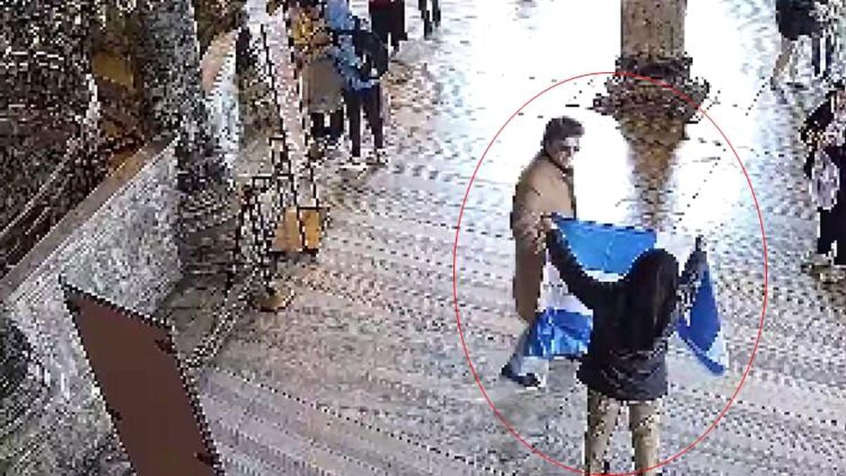 Ayasofya Camii'nde Yunanca "Ya Ortodoks ol ya da öl" yazılı Bizans bayrağı açan iki Yunan vatandaşı, polis tarafından gözaltına alınıp tutuklandı. Olay anı güvenlik kameralarına yansıdı.