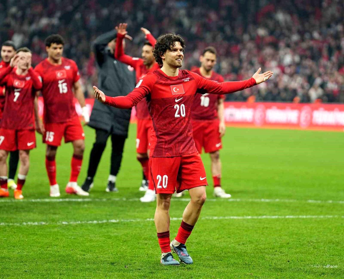 A Milli Futbol Takımı, Romanya’yı 1-0 mağlup ederek 2026 FIFA Dünya Kupası Avrupa elemeleri play-off finaline yükseldi. Ferdi Kadıoğlu ve Arda Güler, maç sonrası taraftarlara üçlü çektirerek büyük sevinç yaşattı.