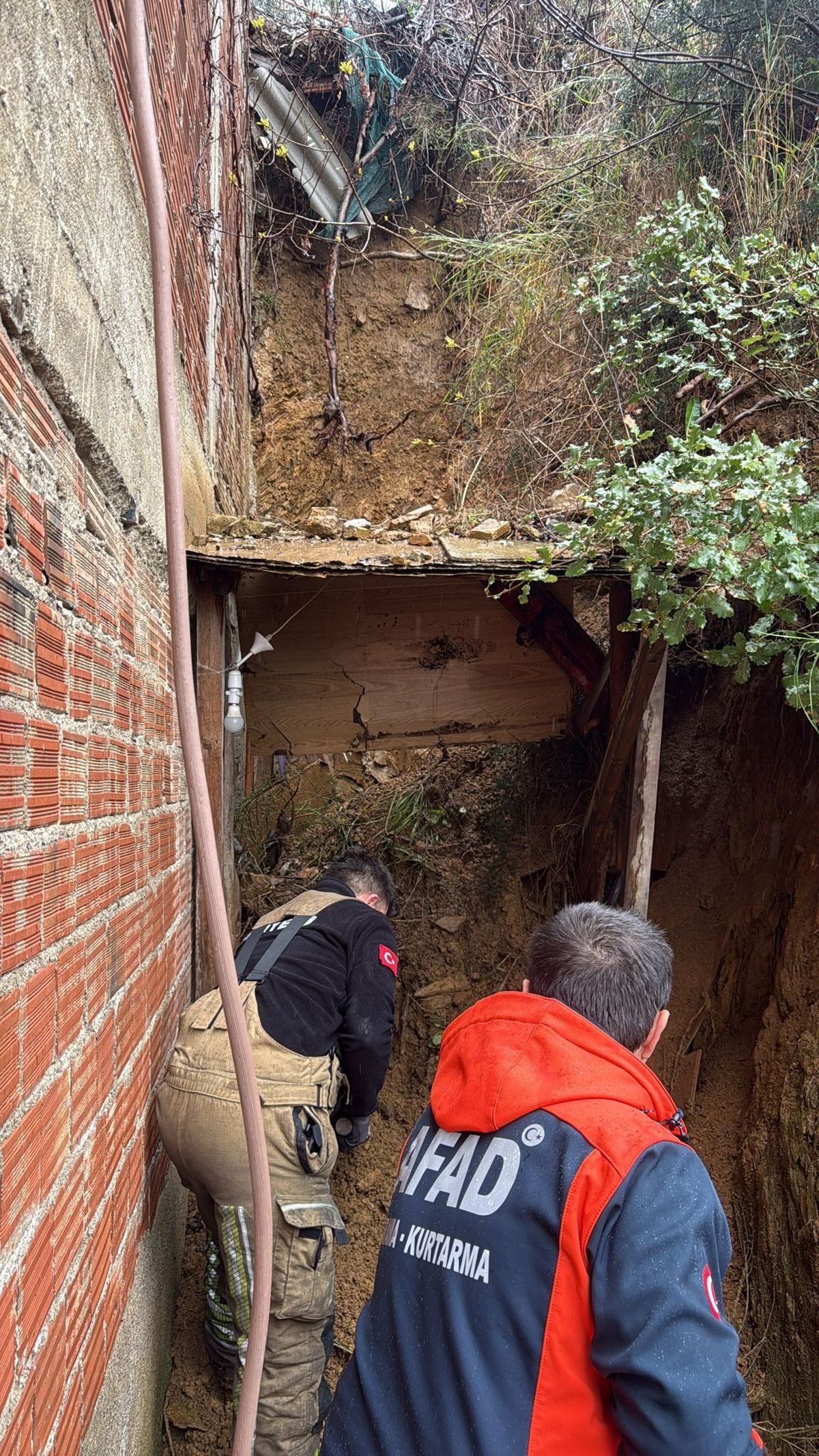 Bursa Osmangazi Çekirge Mahallesi'nde sağanak sonrası meydana gelen heyelanda toprak kayması, bir apartmanın girişini kapattı. AFAD ve itfaiye ekiplerinin hızlı müdahalesiyle evde mahsur kalan kadın sağ salim kurtarıldı.