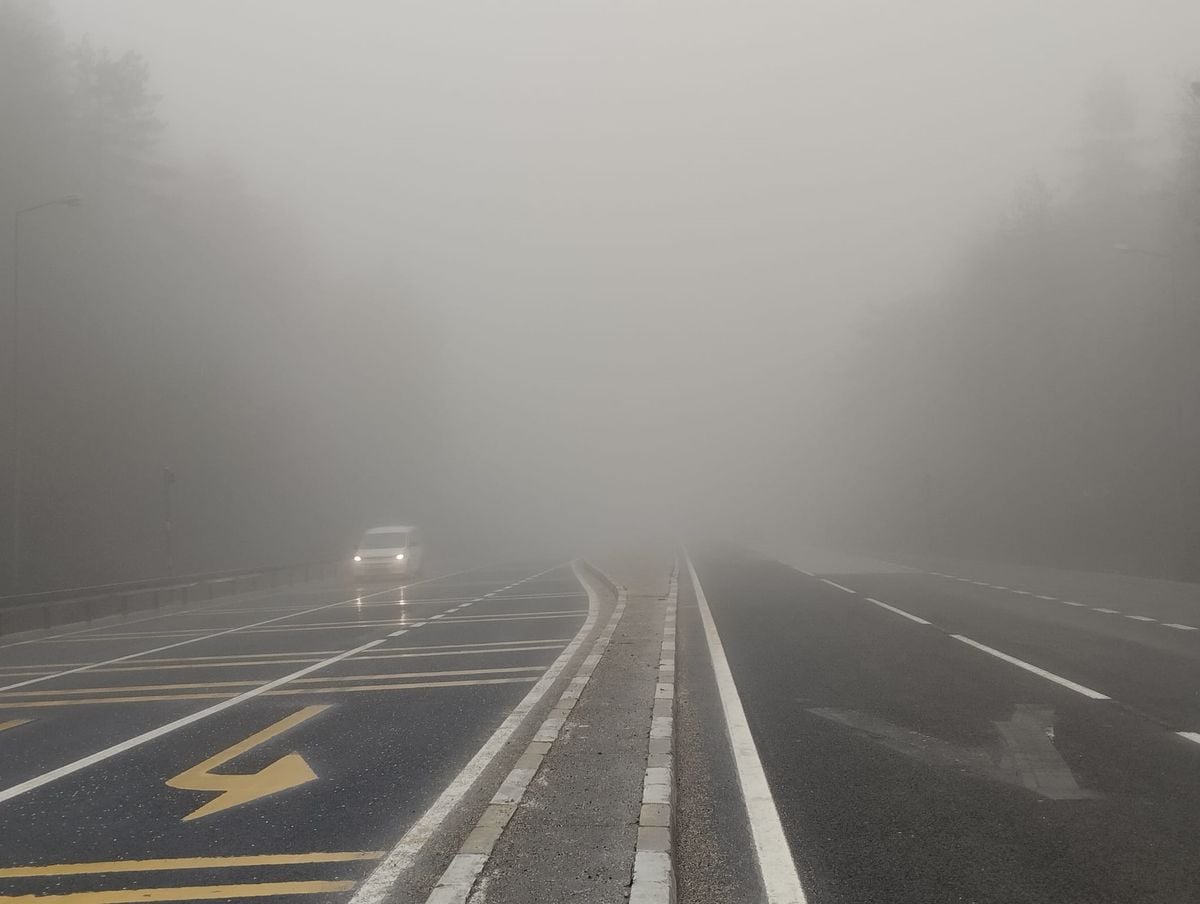 Bolu Dağı D-100 kara yolunda sabah saatlerinde etkili olan yoğun sis nedeniyle görüş mesafesi 30 metreye kadar düştü. Sürücüler, görüşün kısıtlandığı bölgede trafik güvenliği için hızlarını önemli ölçüde azalttı.