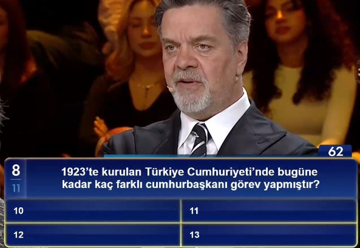 Beyaz’la Joker programında Türkiye Cumhuriyeti tarihindeki cumhurbaşkanları sayısı sorusu izleyicilerin dikkatini çekiyor. Kanal D’de yayınlanan yarışmada, bilgi ve eğlence bir arada sunuluyor.
