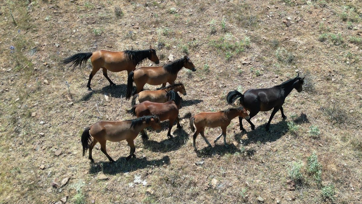 Isparta Aksu'da Yılkı Atlarının Doğal Yaşamı Dronla Görüntülendi
