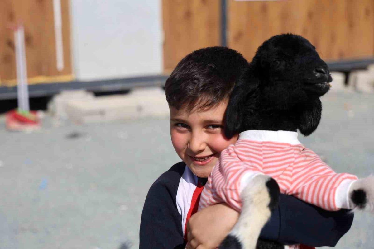 Hatay’da Annesi Telef Olan Kuzuyu Biberonla Besleyip Sahiplenen Dayı ve Yeğenin Dokunaklı Hikayesi