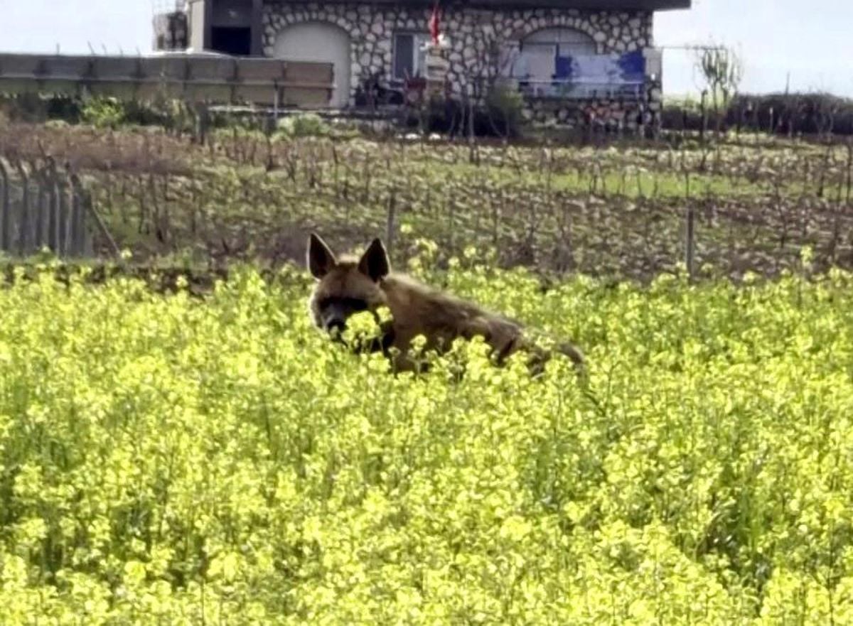 Adıyaman Besni'de Nesli Tehlike Altındaki Çizgili Sırtlan Sarı Çiçekli Tarlada Görüntülendi