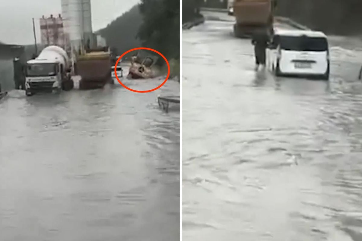 İstanbul Sarıyer'de Yoğun Sağanak Nedeniyle Kemerburgaz Yolu Göle Döndü, Kamyon Dere Yatağına Devrildi