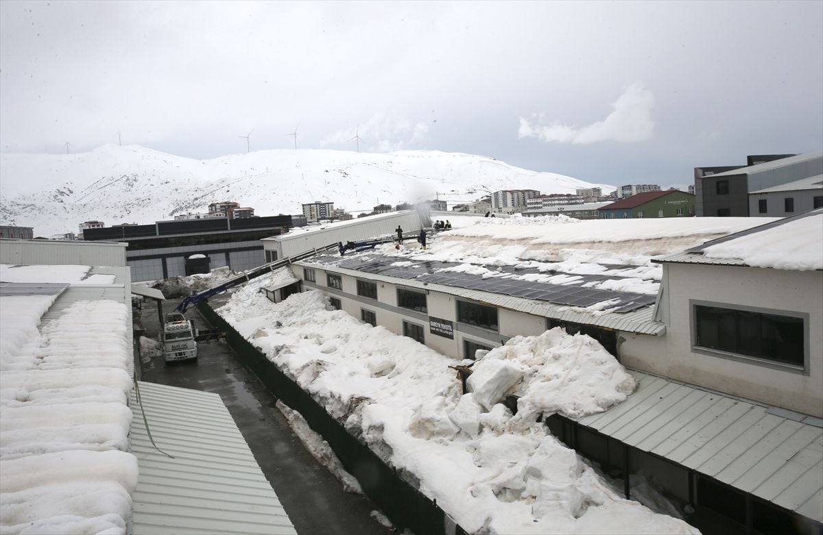 Bitlis’te Tekstil Fabrikasında 2 Metrelik Kar Vince Takılan Özel Aparatla Temizlendi