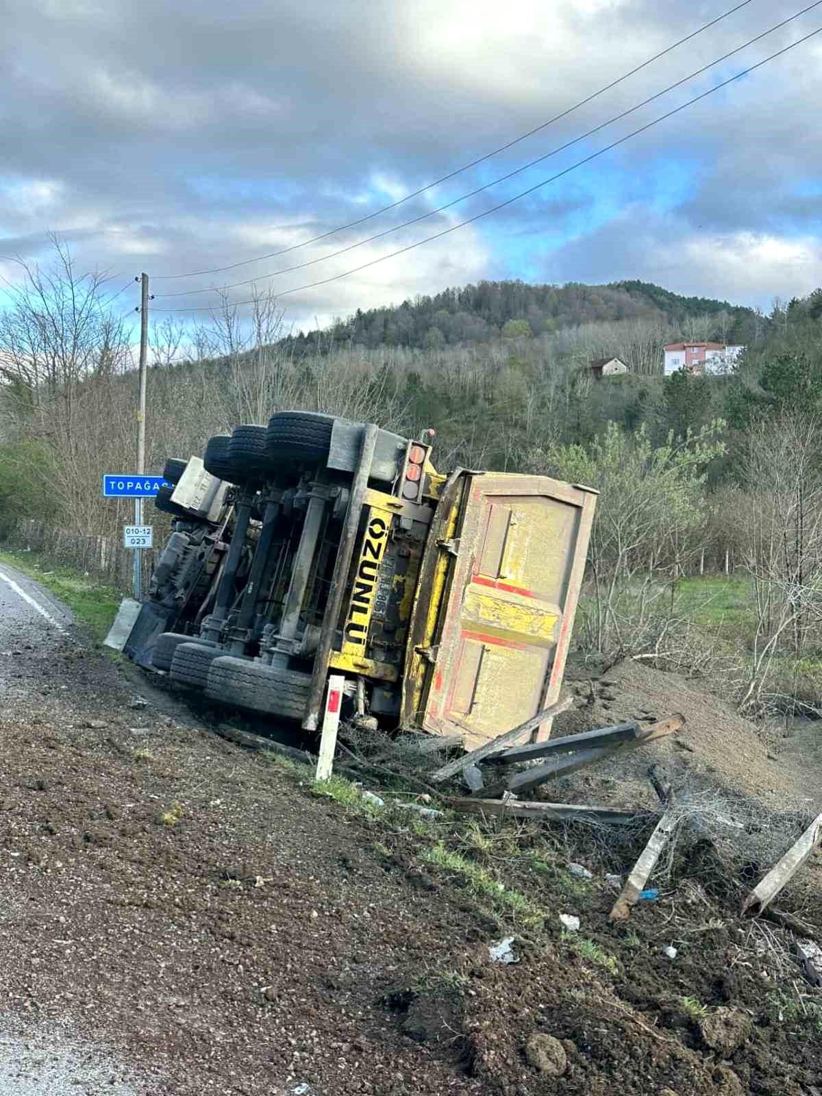 Sinop Ayancık’ta Kum Yüklü Kamyon Şarampole Devrildi: Sürücü Yaralandı