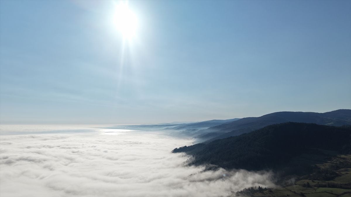 Samsun'un Yakakent ilçesi ile Sinop'un Gerze ilçesi arasında etkili olan sis, Karadeniz'in üzerini tamamen kapladı. Bölgedeki sis yoğunluğu, Samsun-Sinop kara yolunda görüş mesafesini azaltırken, dron ile çekilen görüntüler hayran bıraktı.