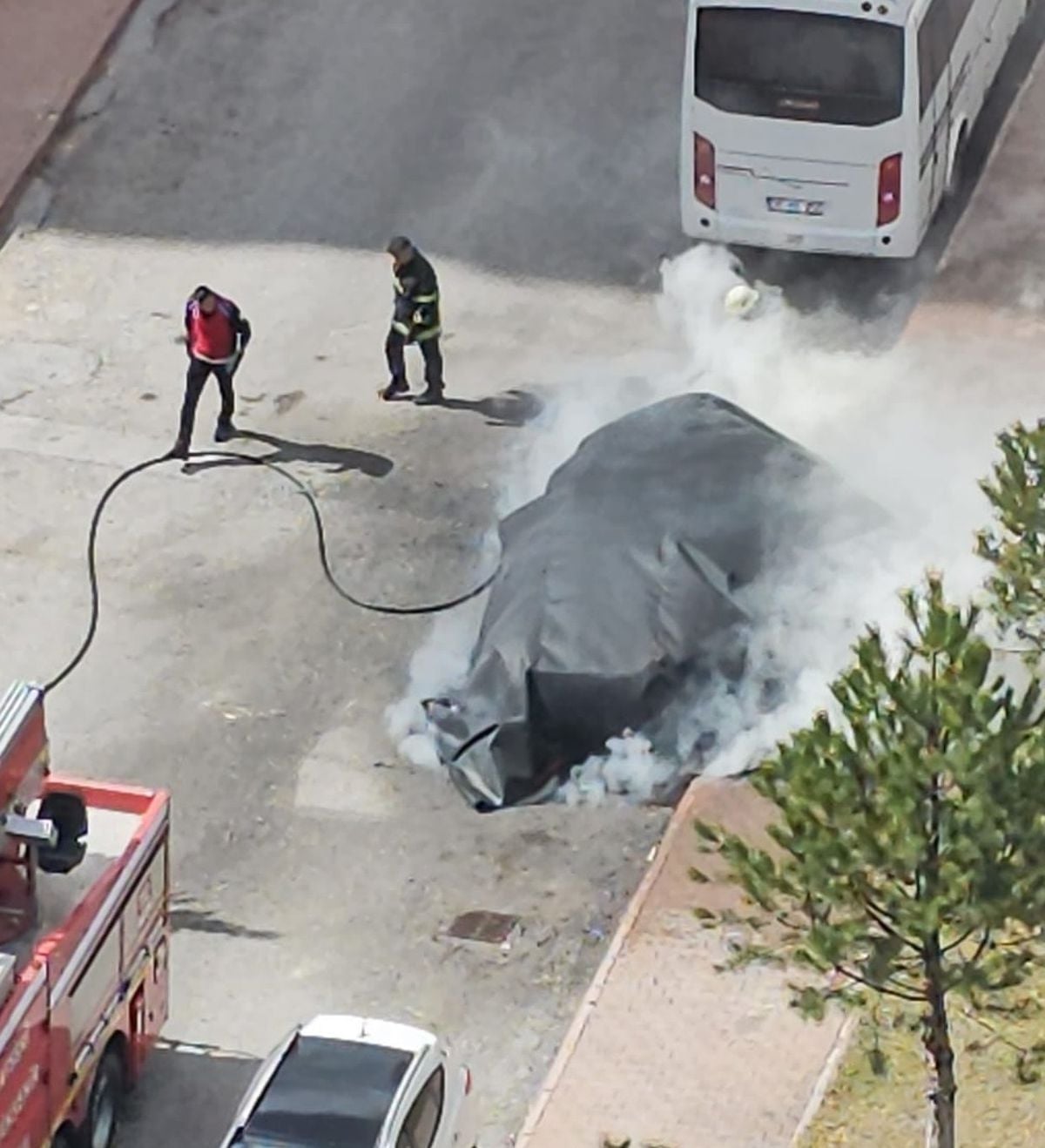Kayseri'de Elektrikli Otomobil Alev Aldı, İtfaiye Yangını Battaniye ve Su ile Söndürdü