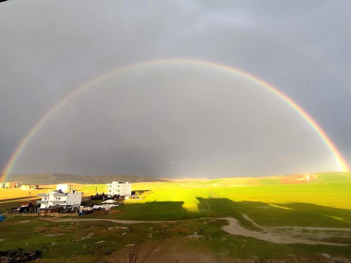 Siirt’in Kurtalan ilçesinde yağmurun ardından ortaya çıkan renkli gökkuşağı, gökyüzünde oluşan eşsiz görüntüsüyle vatandaşlardan büyük ilgi gördü. Bu nadir manzara cep telefonlarıyla ölümsüzleştirildi.
