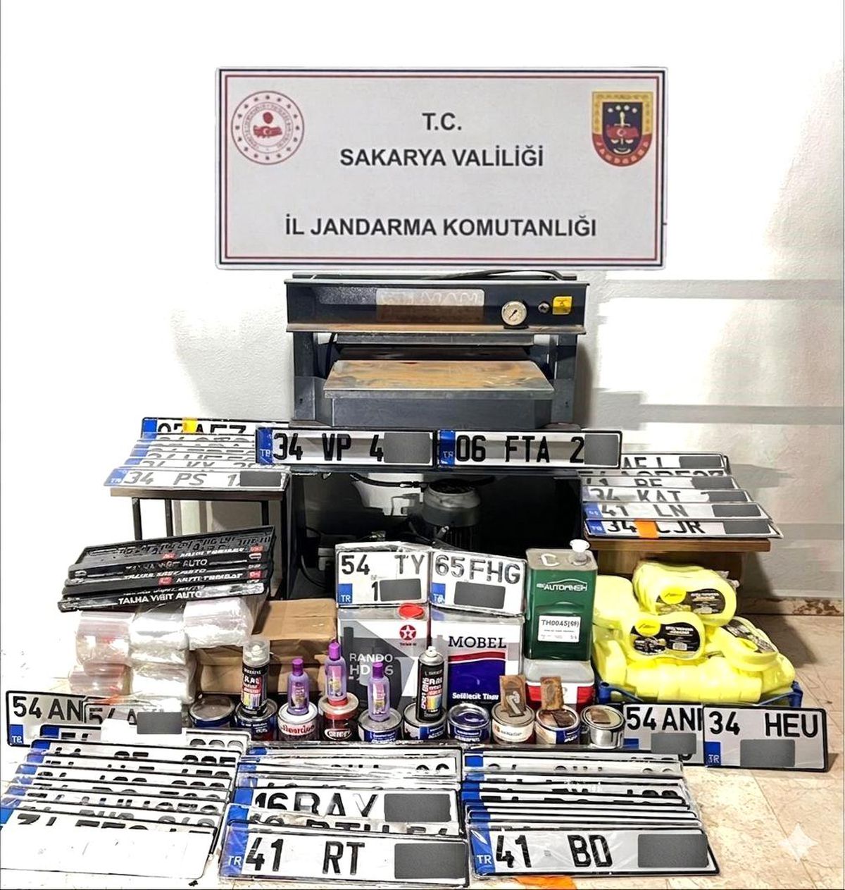 Sakarya İl Jandarma Komutanlığı, sahte plaka üretimi yapan bir şebekeye düzenlediği operasyonla 3 kişiyi gözaltına aldı ve çok sayıda sahte plaka ile üretim ekipmanına el koydu.