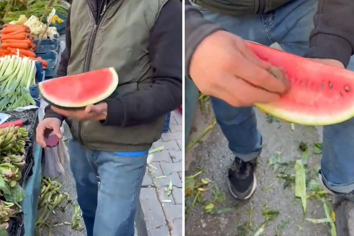 Ankara’daki Pazarcı Esnafının Karpuzu Pancar Suyu ile Boyaması Sosyal Medyada Tepki Topladı