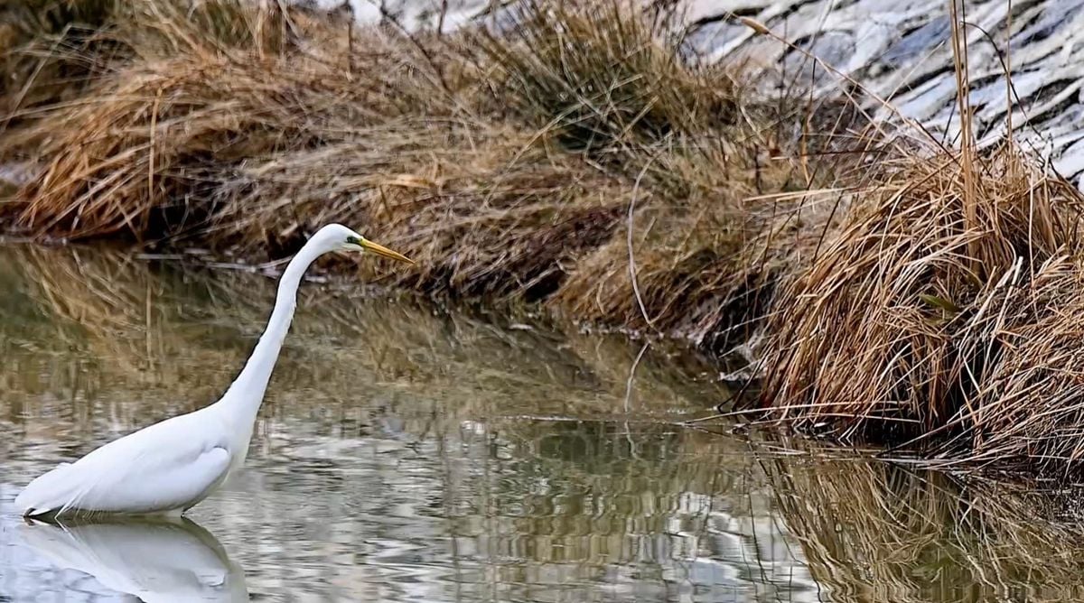 Erzincan Ekşisu Sazlığı’nda büyük ak balıkçıl kuşu balık avlarken doğa fotoğrafçısı tarafından kaydedildi. Sazlık, zengin kuş türleriyle kuş gözlemcilerinin önemli uğrak noktası olmaya devam ediyor.
