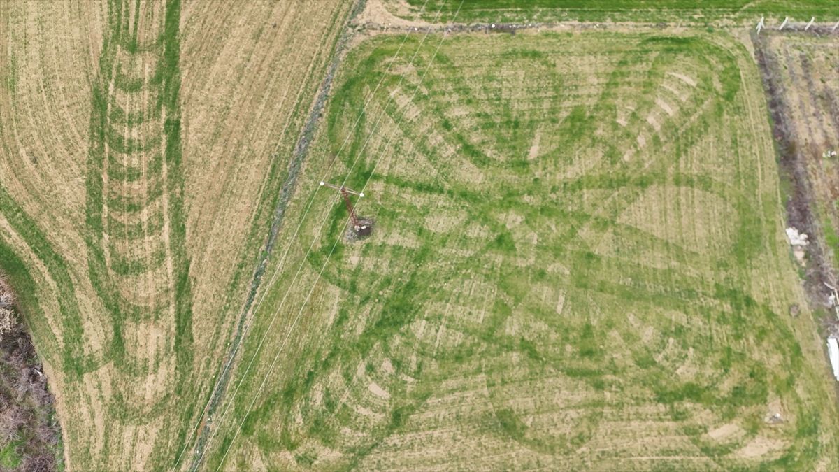 Isparta'nın Yalvaç ilçesindeki arpa ve buğday tarlalarında, ekim sonrası tohumların çimlenmesiyle ortaya çıkan benzersiz geometrik şekiller havadan görüntülendi. Bölgedeki sürüm işlemleri ve doğal ışık koşulları bu etkileyici desenlerin oluşmasını sağladı.