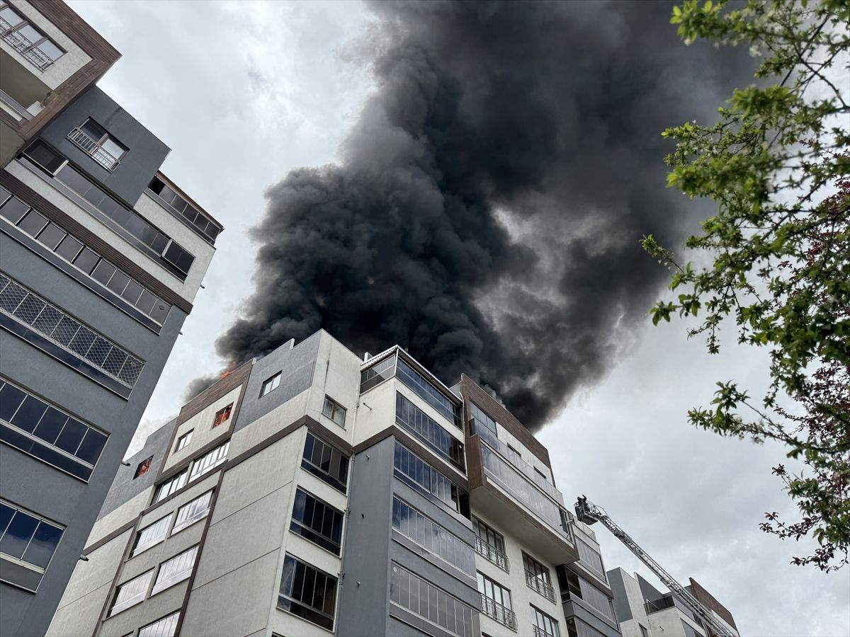 Bursa Yıldırım ilçesindeki 8 katlı bir apartmanın en üst katında çıkan yangına itfaiye ekipleri müdahale ediyor. Binadan tahliye edilenler arasında mahsur kalan 2 kişinin kurtarılması için çalışmalar devam ediyor.