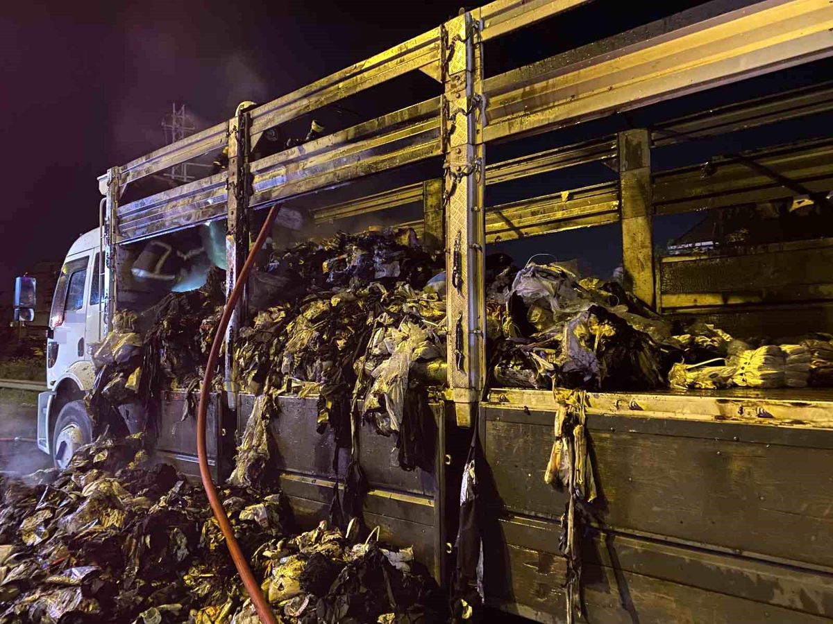 Kocaeli Derince'de TEM Otoyolu üzerinde seyir halindeki tekstil yüklü kamyonda çıkan yangın, tüm yükün yanmasına ve 2 saatlik trafik aksamasına neden oldu. İtfaiye ekiplerinin müdahalesiyle yangın kontrol altına alındı.