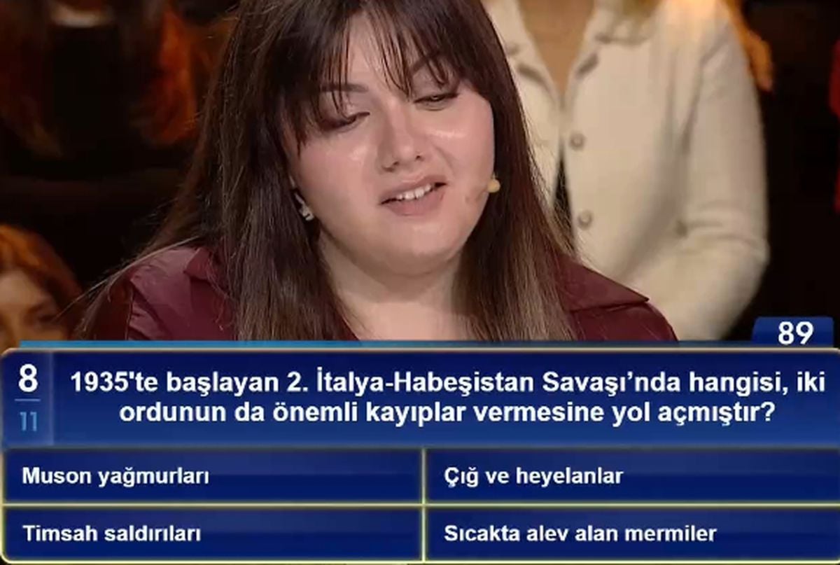 Beyazıt Öztürk’ün sunduğu Beyaz’la Joker programında 2. İtalya Habeşistan Savaşı ile ilgili sorulan soru izleyicilerin dikkatini çekti. Program, Kanal D’de yayınlanmaya devam ediyor.