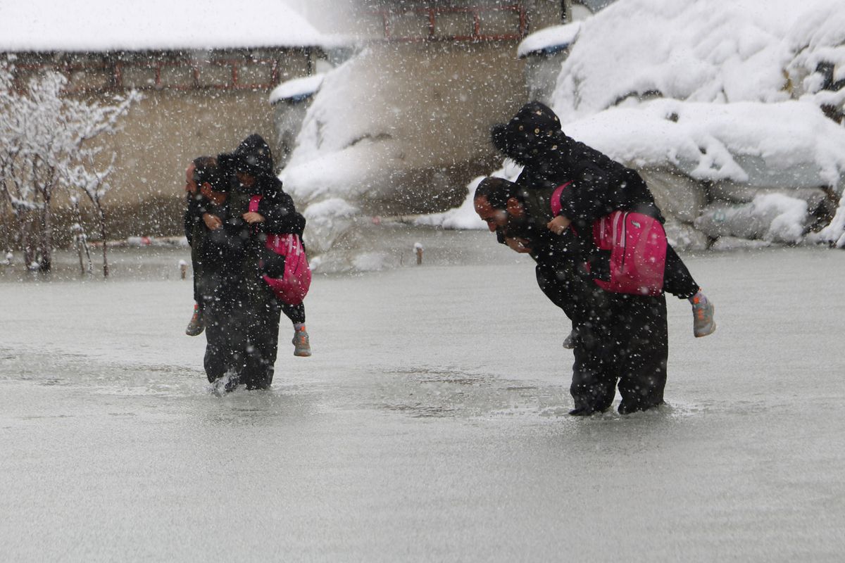 Çocuklar Babalarının Sırtında Okula Gitmek Zorunda Kalıyor